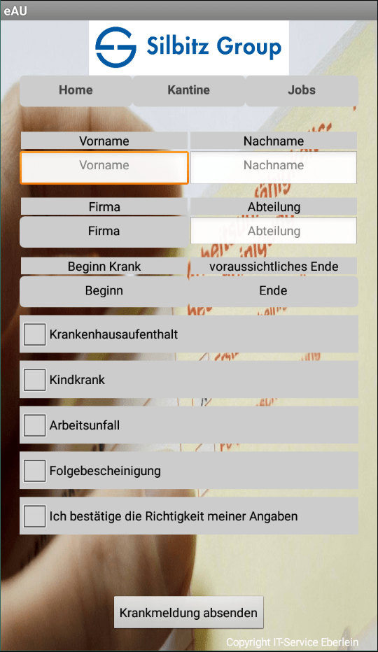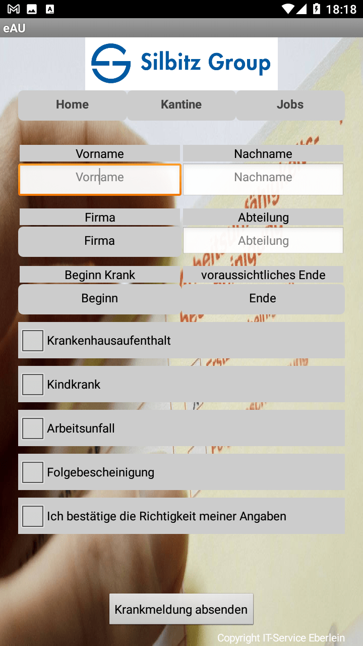 - Erstellung einer elektronischen Krankmeldung per Mail und versand an das Silbitzer Postfach
